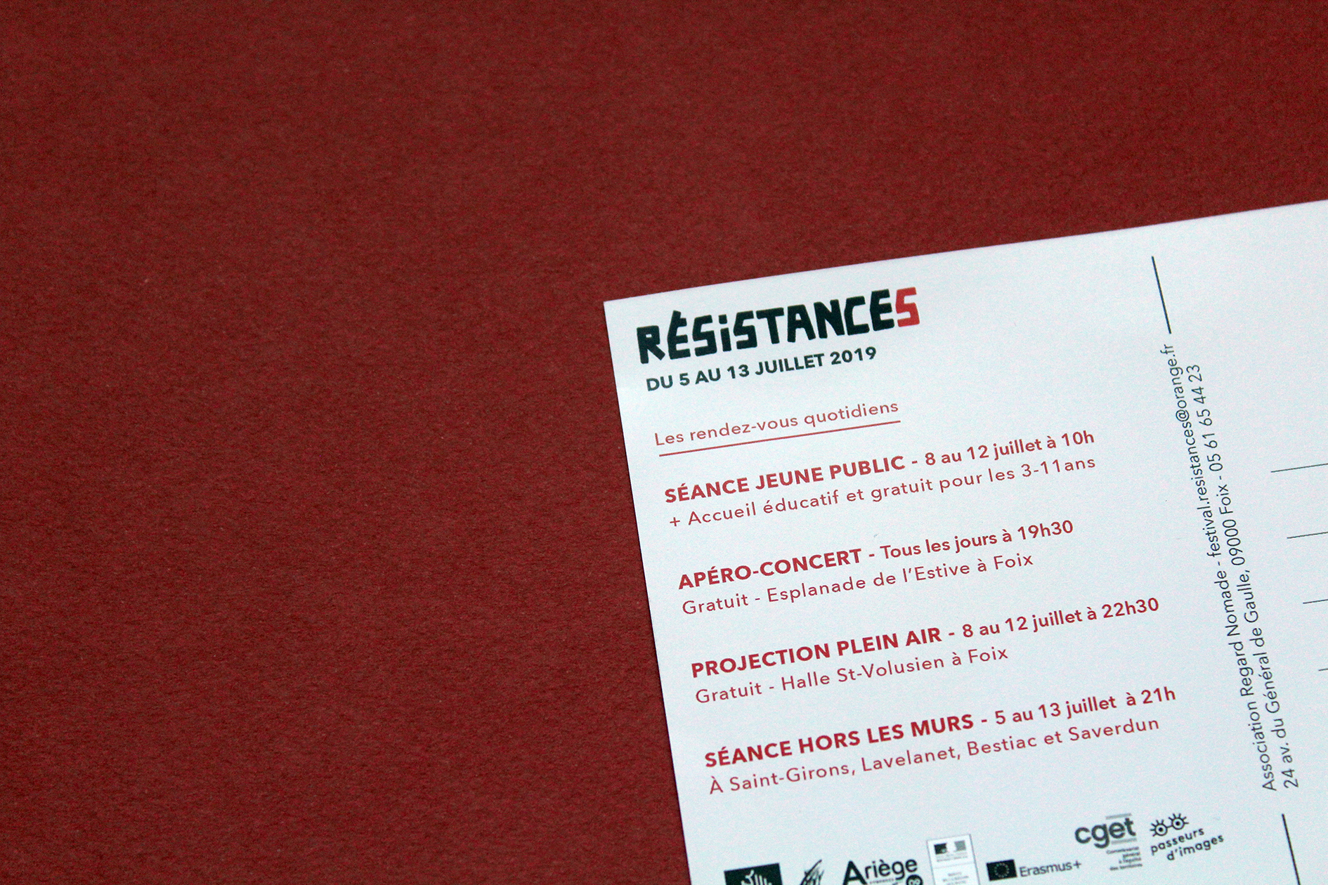 Communication pour le festival de films Résistances (édition 2019, Foix).