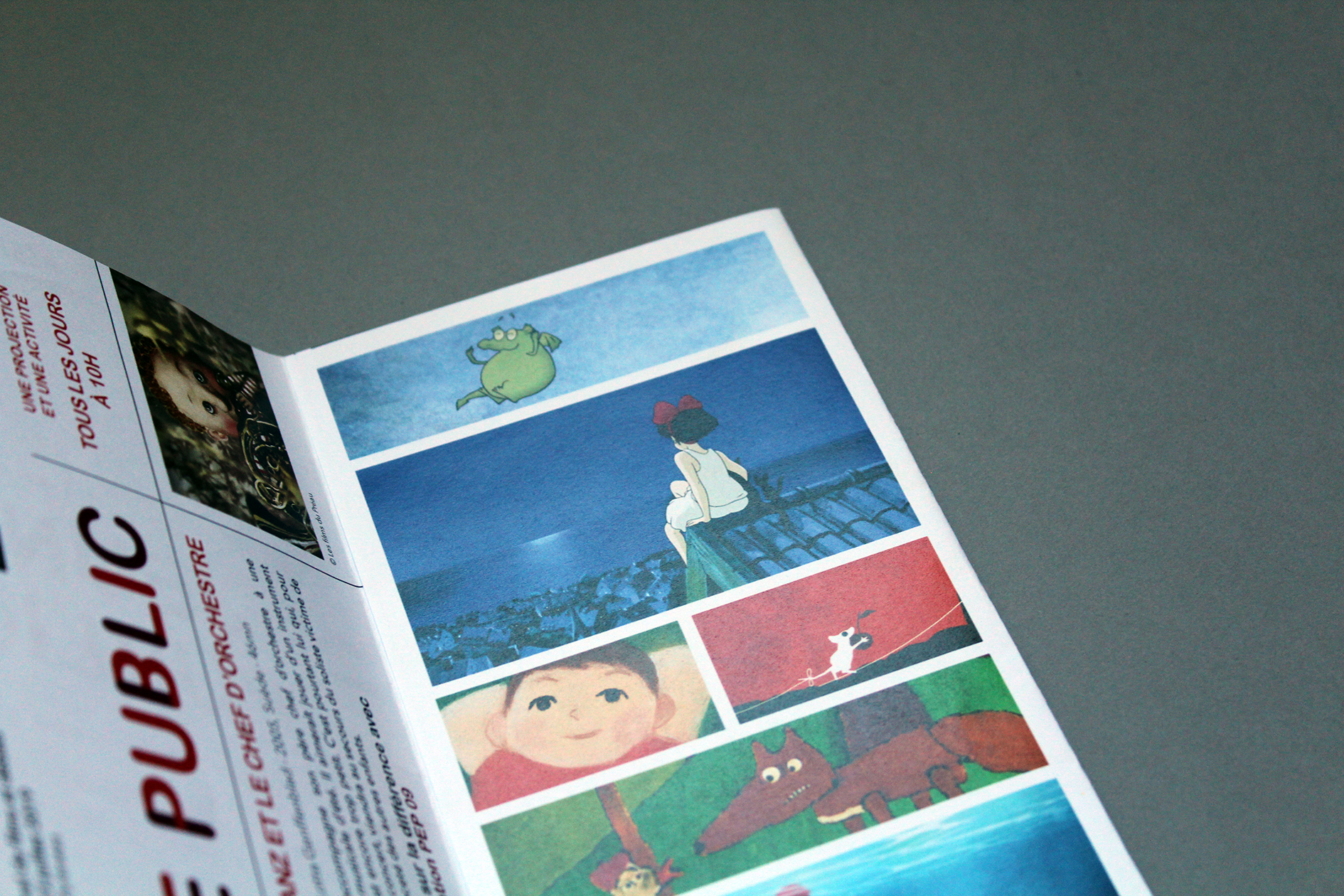 Affiche A2 pour le ciné plein air, dossier de presse, carte A6, programme jeune public A4 plié, programme 8 pages, A5 plié